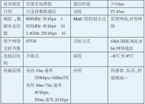 表1中概括了802.15.4的一些特点: