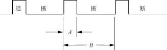 变压器的功率容量是决定铁心尺寸的主要依据。在很多场合变压器的负载是间歇性的,例如音响设备中的电源变压器。这时变压器的体积和重量较连续工作时要减少很多,如图2 所示负载A段对整个B段而言是较小的一段,这时变压器的工作周期比其热时间常数要短很多,可用式(1)计算变压器的额定功率。PN=PL(VA)(1)