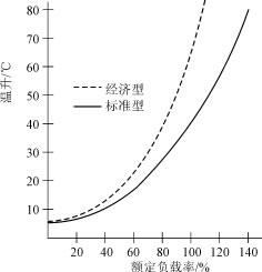 环形变压器的温升特性曲线示于图6,从图6 可看出环形变压器的温升是较低的,对标准型系列,即便是过载120%,温升也不超过70℃。