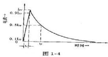 半峰值电流时间TP:电流从零开始通过最大峰值后,下降到0.5IPP值的时间。 其波形如图1-4所示。