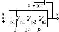 不管可控硅的外形如何,它们的管芯都是由P型硅和N型硅组成的四层P1N1P2N2结构。见图1。它有三个PN结(J1、J2、J3),从J1结构的P1层引出阳极A,从N2层引出阴级K,从P2层引出控制极G,所以它是一种四层三端的半导体器件。