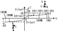 当控制极开路,阳极加上反向电压时(见图3),J2结正偏,但J1、J2结反偏。此时只能流过很小的反向饱和电流,当电压进一步提高到J1结的雪崩击穿电压后,接差J3结也击穿,电流迅速增加,图3的特性开始弯曲,如特性OR段所示,弯曲处的电压URO叫“反向转折电压”。此时,可控硅会发生永久性反向