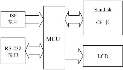 这套系统除了包括单片机和CF卡这两个必不可少的元件以外,另外还包括一个LCD液晶显示屏,其功能主要是用于显示程序执行中各种参数的状态(如串口是否能正常工作)。液晶显示屏是一个很好的硬件调试监视器,尤其是在没有仿真器的条件下,它可以方便地设立程序断点,监视程序的执行,实时显示各个状态参数。