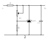 2: 可调稳压电源(附图2)Vo可在2.5~36V之间调节。V0=Vref(1+R1/R2)(Vref=2.5v),由于承受电压与(Vi –Vo)有关,因此压差很大时,R的功耗随之增加。使用时注意。