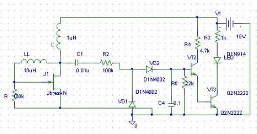 通用的方法是制作一个振荡电路,将被测的晶体接入,看是否起振。若起振,说明晶体是好的,否则是坏的。一个常用的检测电路如图:被测晶体与场效应管VT构成一个振荡器。,若晶振良好,振荡器起振,信号经过C1耦合至VD1,VD2整流、C2滤波,在经过复合放大电路放大,驱动LED发光,如晶体管损坏,则振荡器不能起振, LED不能发光。电感L用来阻止振荡信号通过,只能通过直流。其中LL代表被测晶体。