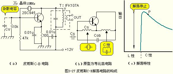 图27所示的为皮尔斯C-B振荡电路,其原型为如图(b)所示的考毕兹振荡电路。