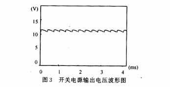 为了检验该电流控制型脉宽调制开关稳压电源的性能,本文按上述应用电路进行了测试,开关电源的波形和负载调整率、电压调整率如图3、表1、表2所示。