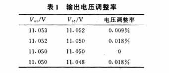 从表1所得到的数据可以算出该稳压电源的电压调整率为:
