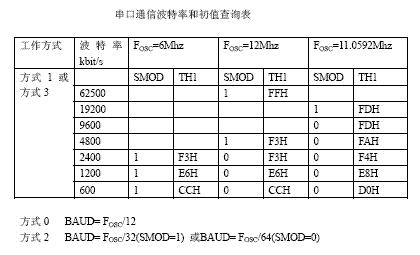 串口通信波特率和初值查询表
