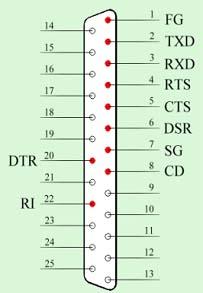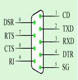 由于RS-232C并未定义连接器的物理特性,因此,出现了DB-25、DB-15和DB-9各种类型的连接器,其引脚的定义也各不相同。下面是常用的DB-25和DB-9连接器接口图: