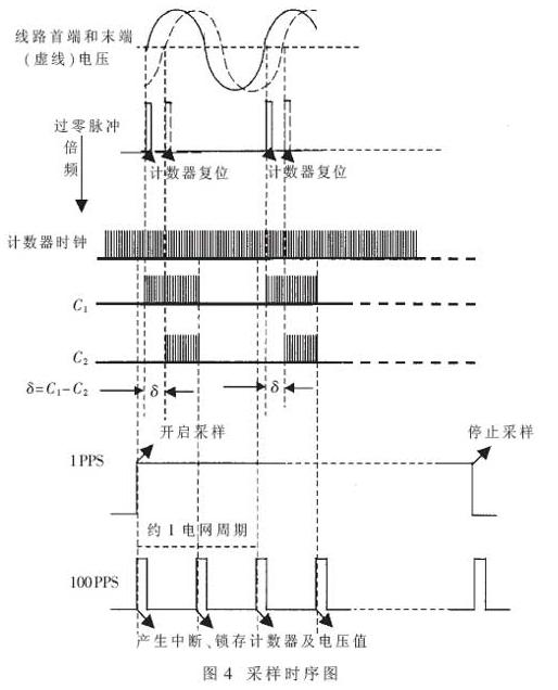 其中,C1、C2为两端计数器的读数,f0为电网频率。由上式可知,两端计数差值就是两端的相位差。