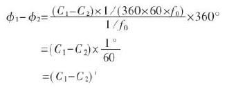 由于电压互感器二次线路压降补偿装置的设计方案要求相差测量精度为±1,,因此将电网频率360×60倍频,计数器记录倍频后的脉冲信号就可满足相位差测量精度的要求。由此可得计算相位差的公式为: