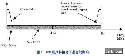上式假设 ADC 输出的滤波器去除了混叠映象和fs附近的噪声。