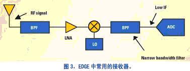 以使用一个射频载波频率 900MHz(欧洲)和 1800MHz(美国)的 GSM/EDGE 基站为例。一个移动基站接收电路类似图3所示。高频射频载波信号首先在混频器和本振级下变频为一个范围150MHz~190MHz 的中频,供模拟/数字的转换使用。前述 Shannon 定理显示,所必需的采样频率是信号带宽的函数,在GSM/EDGE系统中带宽为200kHz。GSM系统的动态范围规格需要最小10位精度的 ADC,虽然实际都使用12位精度。市面上有大量的高速 ADC 可供选择,数字接收器的系统设计师选择器件时必须考虑系统动态范围要求以及器件的成本。由于这些原因,对于GSM接收器应用,50MSPS~70MSPS采样率的ADC是最常见的选择。虽然在66MSPS时150MHz~190 MHz信号为欠采样,对于需要的200kHz信息带宽,并没有违反 Nyquist 准则。这种选择为200kHz的带宽信息信号提供了足够大的空间,同时提供了超过20dB的处理增益。请注意,由于种种原因,继续增加采样频率来不断提高处理增益的方法是不切实际的。市面上有更高采样率的12位ADC,譬如12位80MSPS的ADC(美国国家半导体 ADC12L080),以及一些大于100MSPS的12位专用ADC,但低于100MSPS 和高于 100MSPS 采样率 ADC 之间的成本差别相当大。