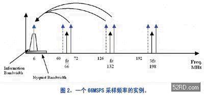 在许多应用中,这大大地减少了对ADC的要求。对一个具有150MHz最大信号频率,但只有10MHz 带宽的信号进行采样,可能只需要一个约22MSPS的ADC,而不是Nyquist规定的大于300MSPS的 ADC。