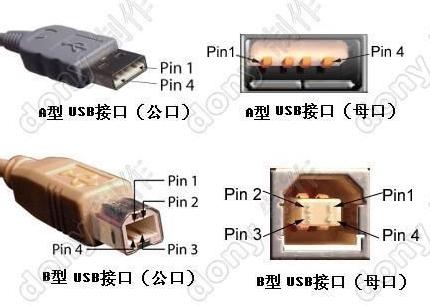 USB 是 Universal Serial Bus 的缩写,由 Compaq, Digital, IBM, Intel, Microsoft, NEC, Northern Telecom 联合推出。外观上计算机一侧为 4 针公插,设备一侧为 4 针母插。