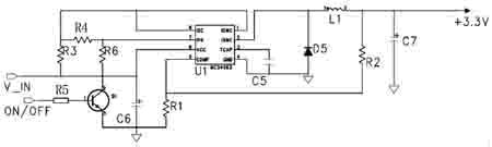 MC34063本身不具有关断功能,但可以利用它的过流饱和功能,增加几个器件就可以实现关断功能,同时还可以实现延时启动。