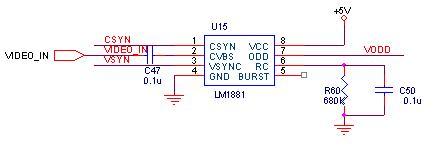 不过LM1881还有一个特点,就是贵。刚用它时,8元,现在好象也还要4~5元,替代的好像价格也差不多,打劫啊!给别人设计的电路,绝对用它,自己的电路,可不大敢用。