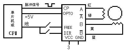 FREE 脱机,与CPU地线相接,驱动电源不工作 DIR 方向控制,与CPU地线相接,电机反转