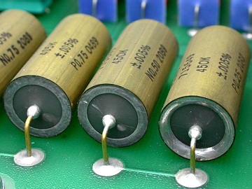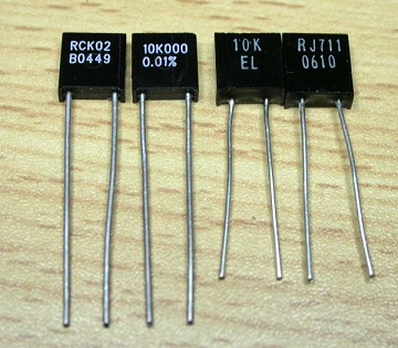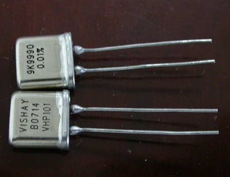 - 金封块电阻,这是目前最高等级的电阻,内部结构同上但采用金属陶瓷密封(外形类似晶振),彻底杜绝外界老化因素,同时零温度系数技术使得温度系数达到很难测量出来的程度。老化典型值2ppm/年,有的达到0.5ppm/年以下。新品价格大约400元/只,西方国家对我国实行封锁,严禁进口用于军事目的,连8位半的万用表3458A也仅仅用了一只(做内部标准电阻)。