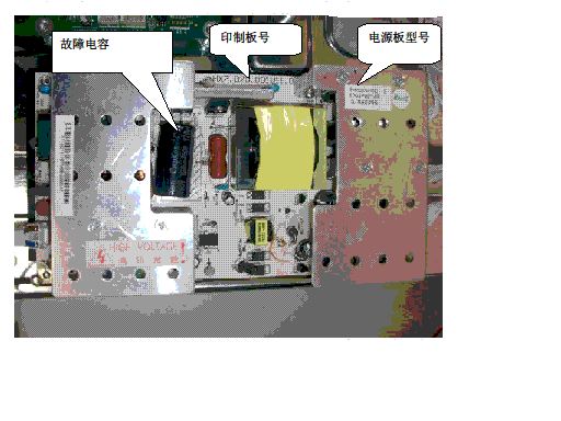 分析检修:该电视待机指示灯闪烁,二次开机马上熄灭。怀疑电源带负载能力差,开盖测量5V电压不稳定。电源板使用R-HS210-4N01-2 检测电源内部300V电压低。取下滤波电容C01(450V/270UF)检测容量不够。代换该电容开机正常。