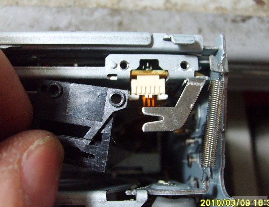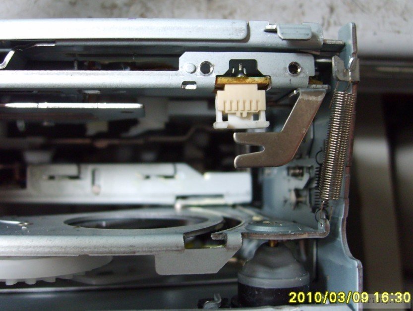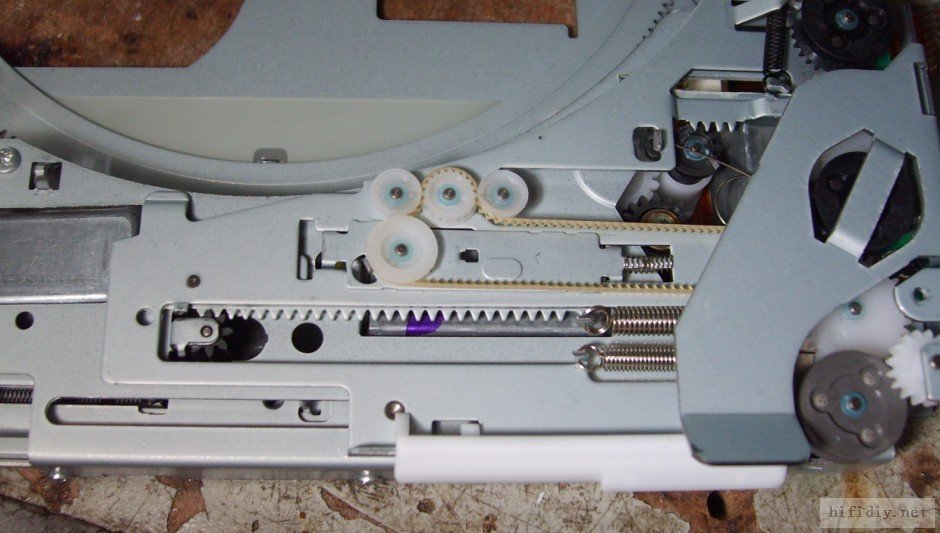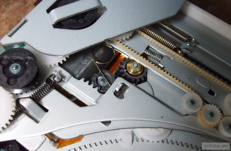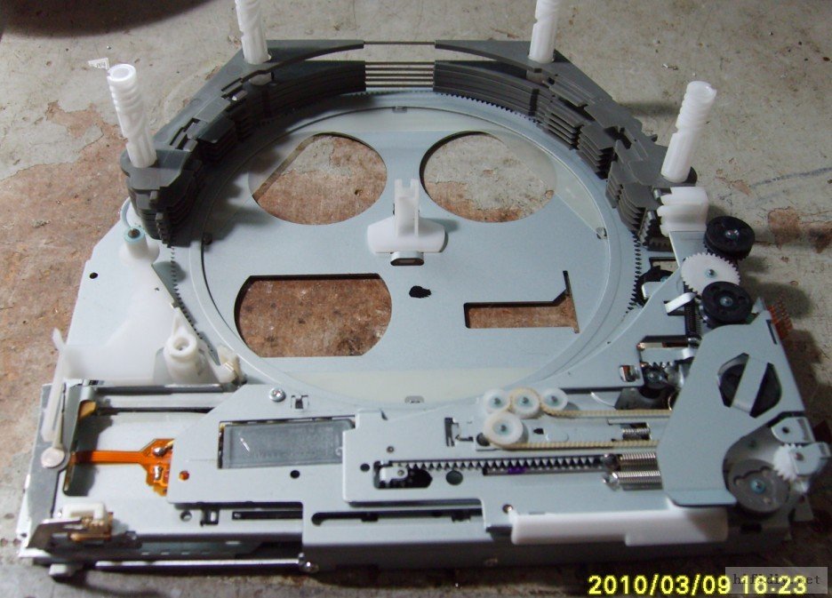 阿尔派的机芯,机械结构比较简单,只有几个位置对住基本就能搞定,唯一麻烦的就是碟匝的升降卡柱断掉的话比较麻烦,必须更换。本机刚好就是碟匝的升降卡柱断了造成卡碟使机芯无法复位机械结构运作失效。拆解更换后对好位问题解决。